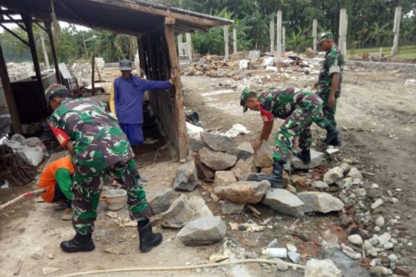 Babinsa Gotong Royong Bersama Warga Bangun Rumah Agar Pekerjaan Cepat Selesai