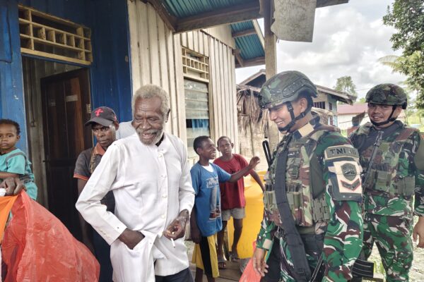 VN-24, Suator – Satgas Kewilayahan Yonif 123/RJW Pos Suator melaksanakan kegiatan pembagian Sembako dan Sargal kepada masyarakat di Suator, Kab….