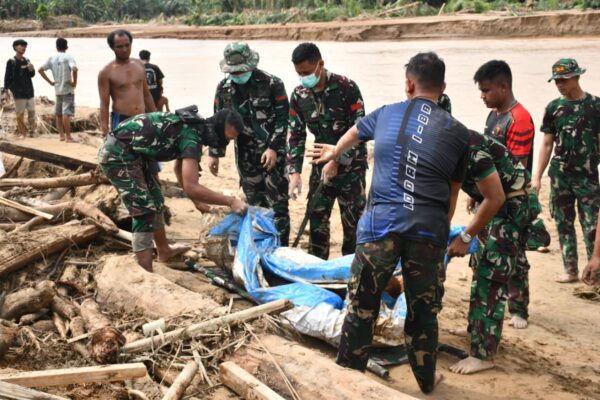 VN-24, Tapanuli Selatan – Satgas Penanggulangan Bencana Kodam I/BB mengevakuasi jenazah seorang laki-laki yang ditemukan meninggal dunia akibat banjir di…