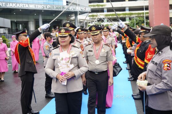 Tradisi Pedang Pora Iringi Purna Tugas Personel Polres Metro Jakarta Barat