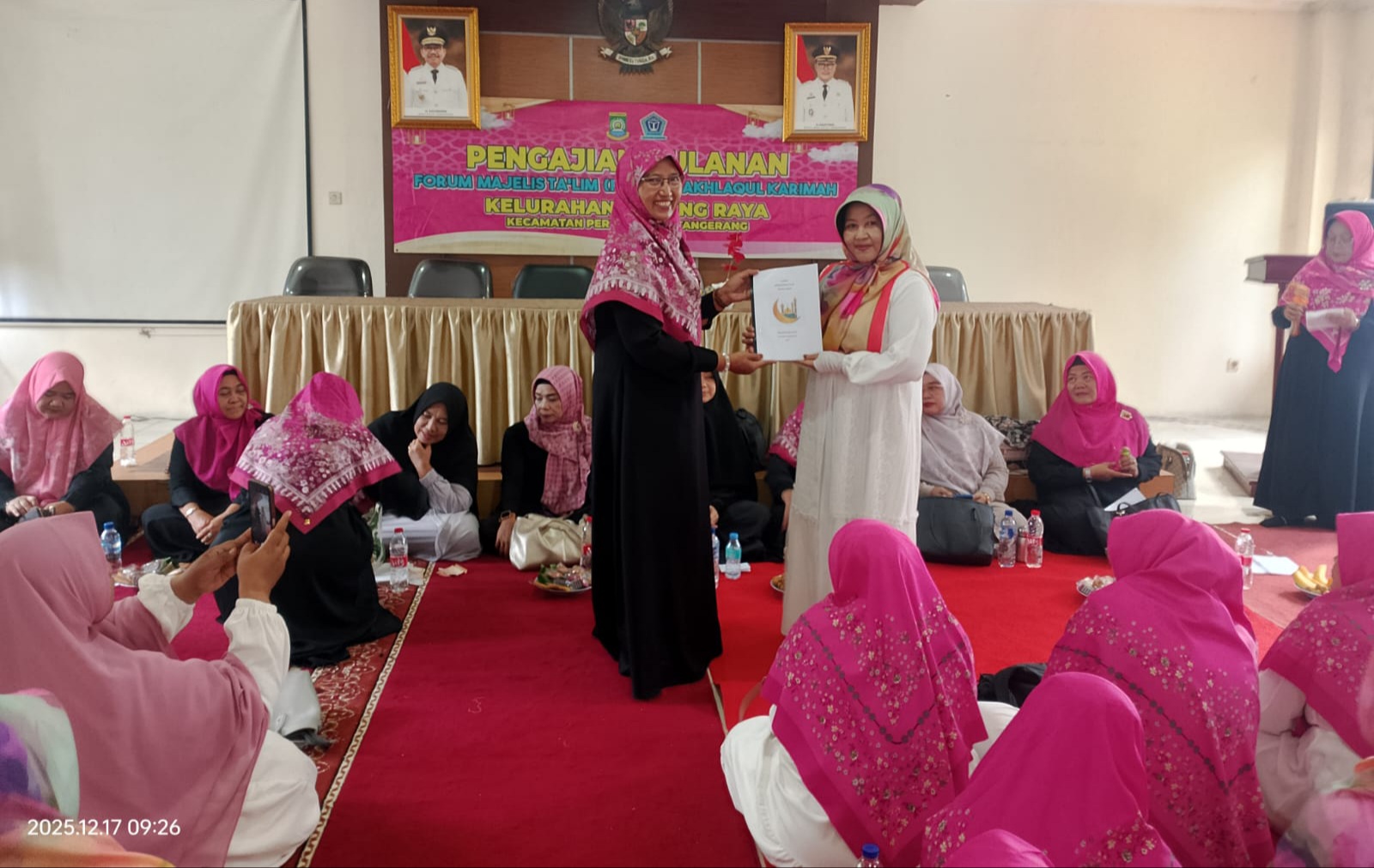Forum Majelis Taklim (Format) Akhlaqul Karimah Kelurahan Gebang Raya Melaksanakan Pengajian Rutin Bulanan di Aula Kantor Kelurahan Gebang Raya, Kecamatan Periuk, Kota Tangerang, Banten, Rabu (17/12/2025) pagi.