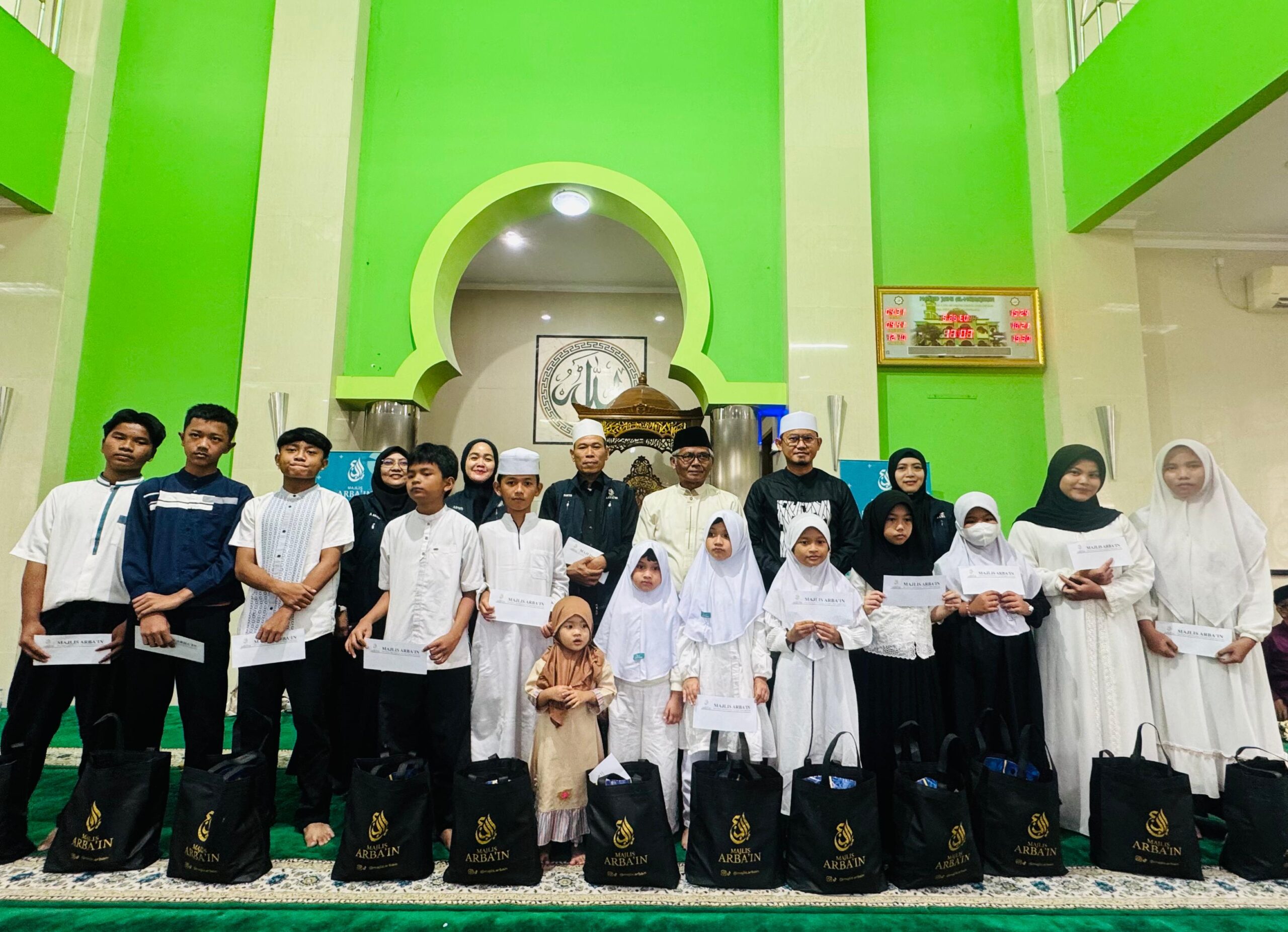 Hadir pada acara ini Ketua Format Akhlaqul Karimah Kecamatan Periuk Ustadzah Hj. Mulyati Sugiyono, Ibu Hj. Fortune Junadi, Relawan Majlis Arba’in Ibu Hj. Dluha Seftiatul Hanifah dan Ketua RW 004 Gebang Raya Ibu Hj. Yanni Sudjito.