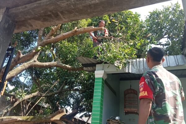 VN-24,Boyolali – Respon cepat ditunjukkan Babinsa Koramil 11/Ngemplak Kodim 0724/Boyolali Sertu Sumarno bersama warga saat mengevakuasi pohon tumbang akibat terpaan…