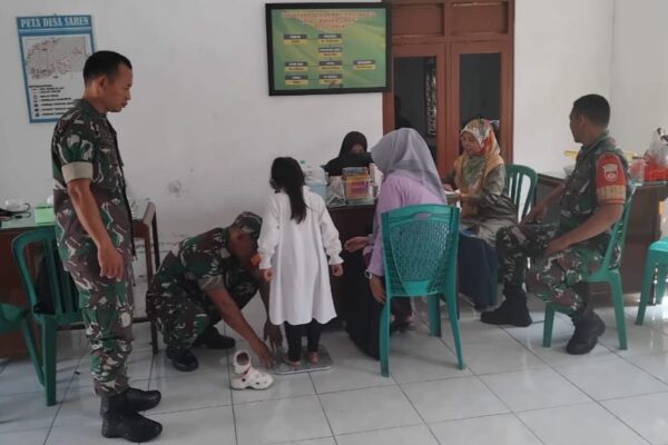 VN-24, Sragen, Pelda Jumarno Babinsa Koramil 18/Kalijambe Kodim 0725/Sragen melaksanakan pendampingan kegiatan Posyandu di Desa saren Kecamatan Kalijambe. Kegiatan Posyandu…