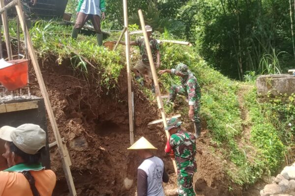 Gotong Royong TNI dan Warga Percepat Pembangunan Jembatan Garuda di Pagerwojo