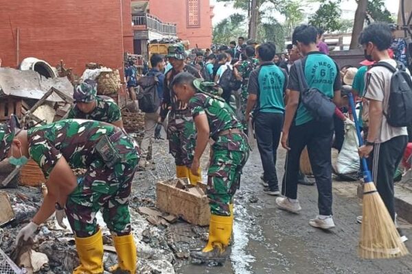 TNI Membantu Warga Pasca Banjir, Pulihkan Lokasi Yang Dilalui Aktifitas Warga
