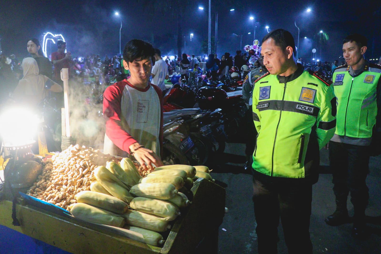 Sapa sejumlah masyarakat di Taman Elektrik, Lapangan Ahmad Yani dan Kuliner Pasar Lama, Kapolres menyampaikan pesan Kamtibmas dan ingatkan masyarakat untuk segera kembali ke rumah jika telah selesai menghabiskan waktu di luar rumah di momen malam takbiran itu.