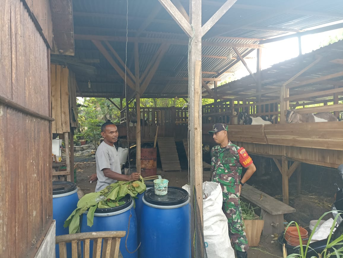 Sementara itu, Bapak Paino, peternak kambing yang mendapat pendampingan, mengaku sangat senang dan terbantu dengan kehadiran Babinsa di kandangnya.