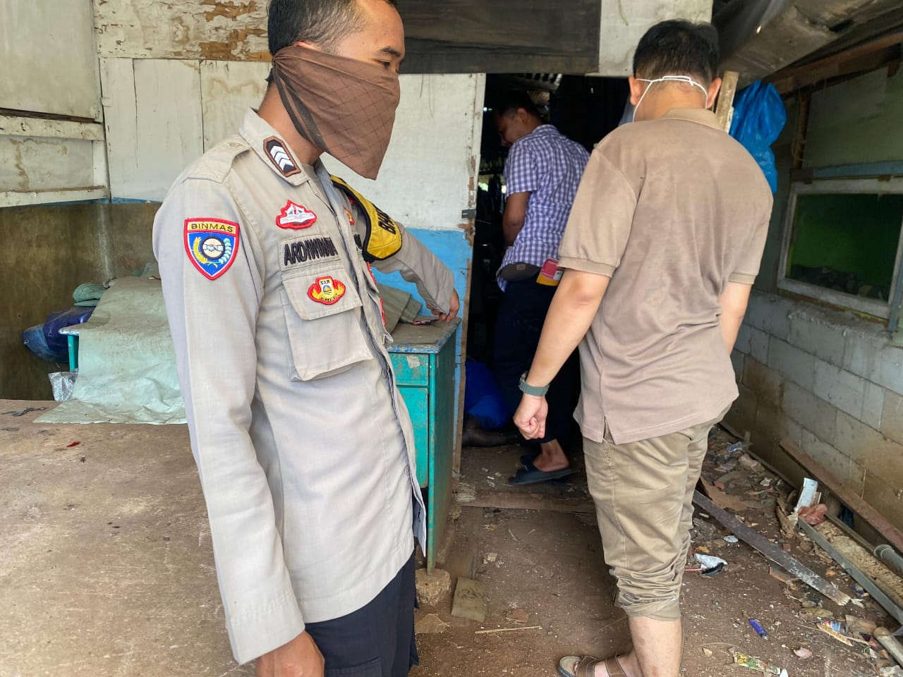 “elanjutnya saksi mengintip melalui sela-sela pintu dan melihat korban tengkurap dan dalam keadaan meninggal dunia,” terang Syamsul.
