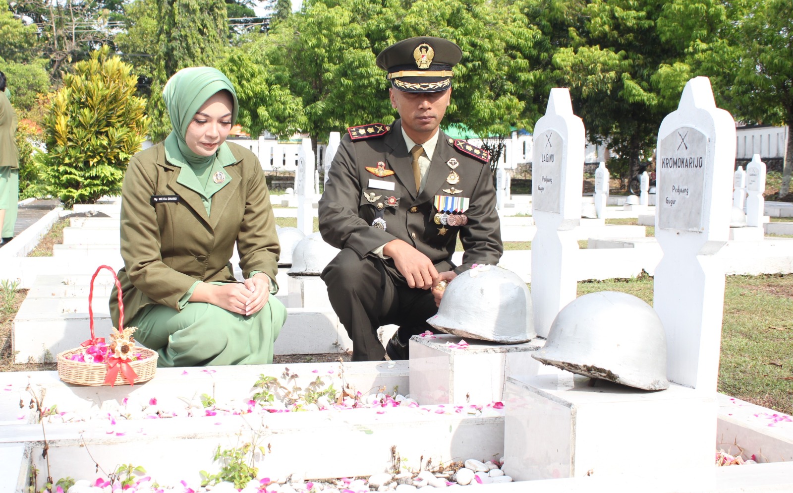 Upacara ziarah dipimpin langsung oleh Dandim 0724/Boyolali, Letkol Inf Dhanu Anggoro Asmoro, S.E., dan diikuti oleh Ketua Persit Kartika Chandra Kirana Cabang XLV Kodim Boyolali, Ny. Meita Dhanu Anggoro, bersama para perwira serta anggota Kodim 0724/Boyolali.