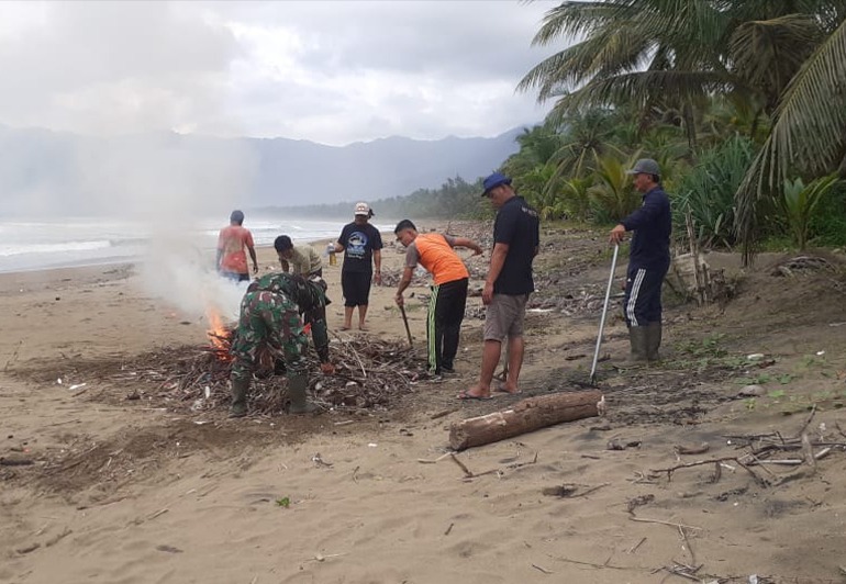 Sejak pagi, personel TNI, Polri, dan warga bergotong royong mengumpulkan sampah plastik, ranting, hingga rumput liar di sepanjang garis Pantai Blado. Pemandangan kekompakan itu menjadi bukti nyata bahwa kebersamaan tetap hidup, terutama dalam merawat aset wisata alam yang menjadi kebanggaan Munjungan.