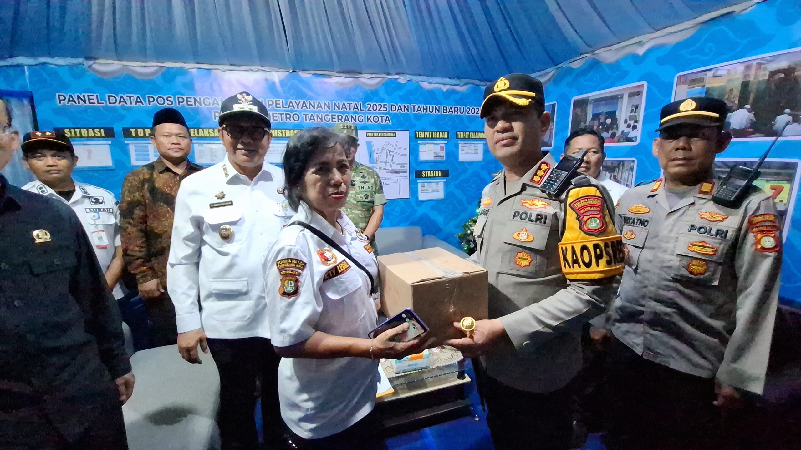 VN-24, Kota Tangerang — Kapolres Metro Tangerang Kota Kombes Pol. Dr. Raden Muhammad Jauhari, S.H., S.I.K., M.Si., melaksanakan pemantauan Ibadah Natal Tahun 2025 sekaligus melakukan pengecekan Pos Pengamanan dan Pos Pelayanan Operasi Lilin Jaya 2025 bersama unsur Forkopimda Kota Tangerang, Rabu malam (24/12/2025).