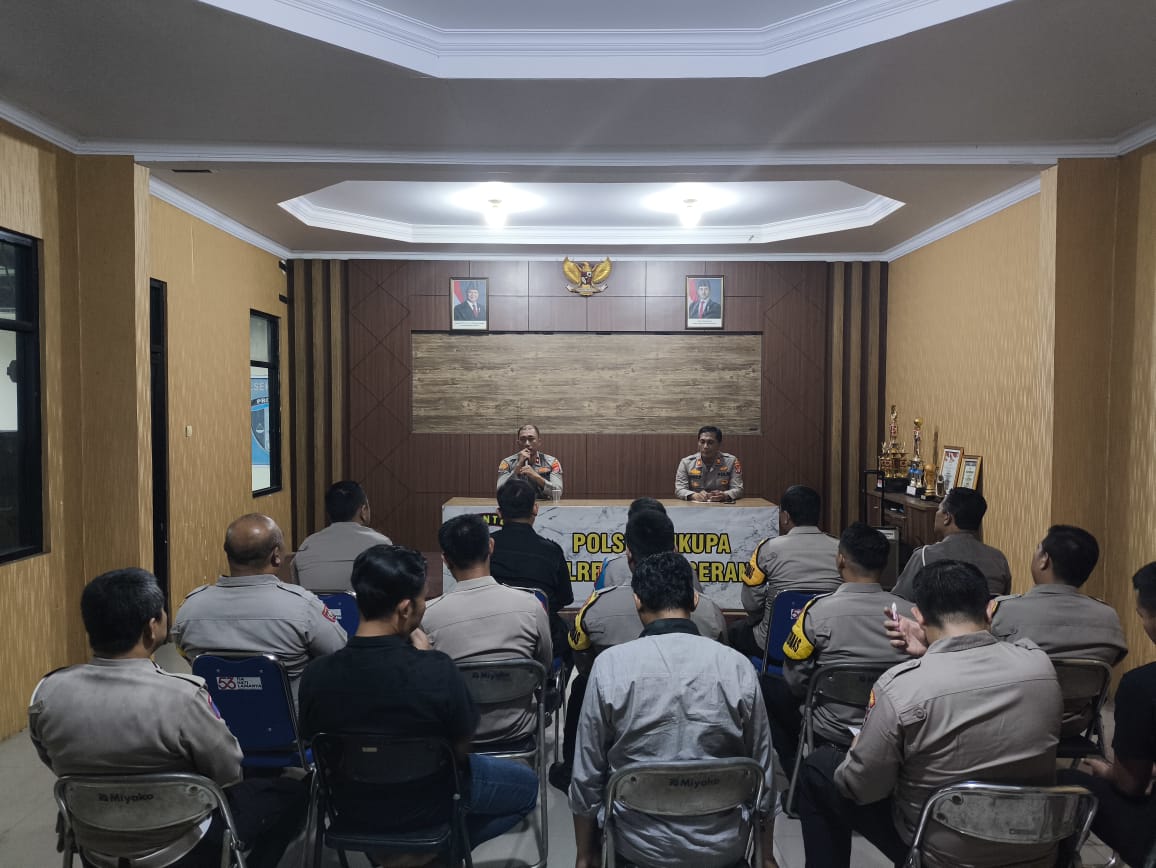 Dalam arahannya, Kapolsek menyampaikan 35 poin penting Comanderwish Kapolda Banten, di antaranya peran kehadiran pimpinan dalam penanganan aksi unjuk rasa, penyusunan rencana pengamanan, peningkatan kepekaan terhadap konflik sosial, hingga pengawasan terhadap pelayanan publik.