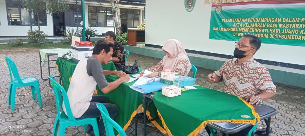 “Hari Juang Kartika bukan hanya momentum untuk mengenang sejarah TNI AD, tetapi juga menjadi kesempatan bagi kami untuk hadir membantu masyarakat secara nyata. Pendampingan pembuatan Akta Kelahiran ini diharapkan dapat memudahkan warga yang belum memiliki dokumen kependudukan,” ujarnya.