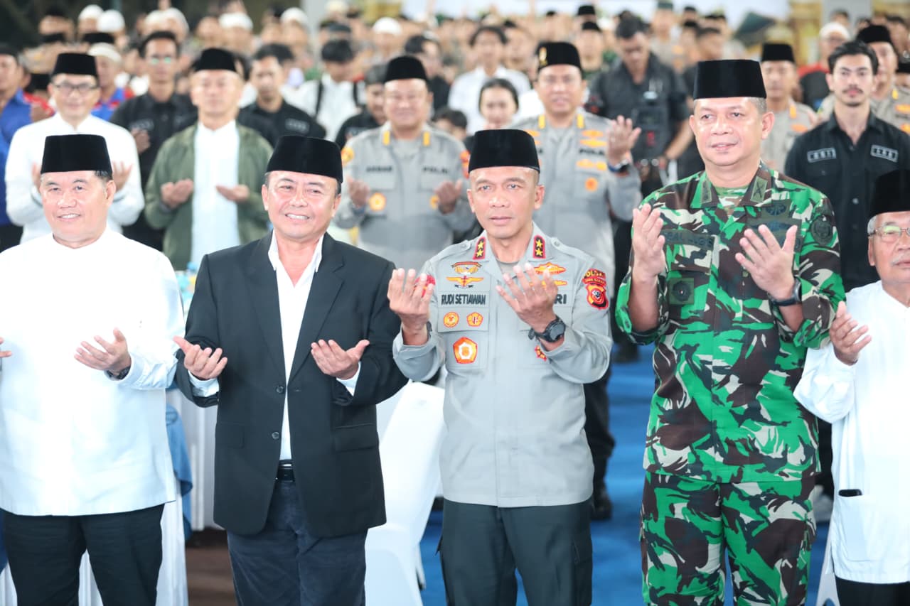 VN-24, Bandung, Jawa Barat – Suasana Hidmat menyelimuti Polda Jabar pada Minggu (7/9/2025) saat TNI, Polri, Forkopimda dan para tokoh agama, tokoh masyarakat, serta ojeg online juga elemen masyarakat berdoa bersama untuk negeri dalam rangka memperingati Maulid Nabi Besar Muhammad SAW 1447 H