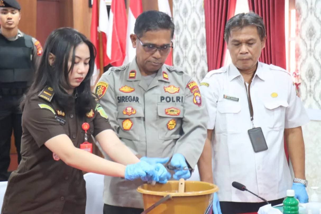 VN-24, Polres Kobar – Polres Kotawaringin Barat (Kobar) memusnahkan barang bukti hasil pengungkapan tindak pidana narkotika periode Mei hingga Oktober 2025. Kegiatan berlangsung di Aula Haprabu Polres Kobar, Rabu (5/11/2025) pagi.