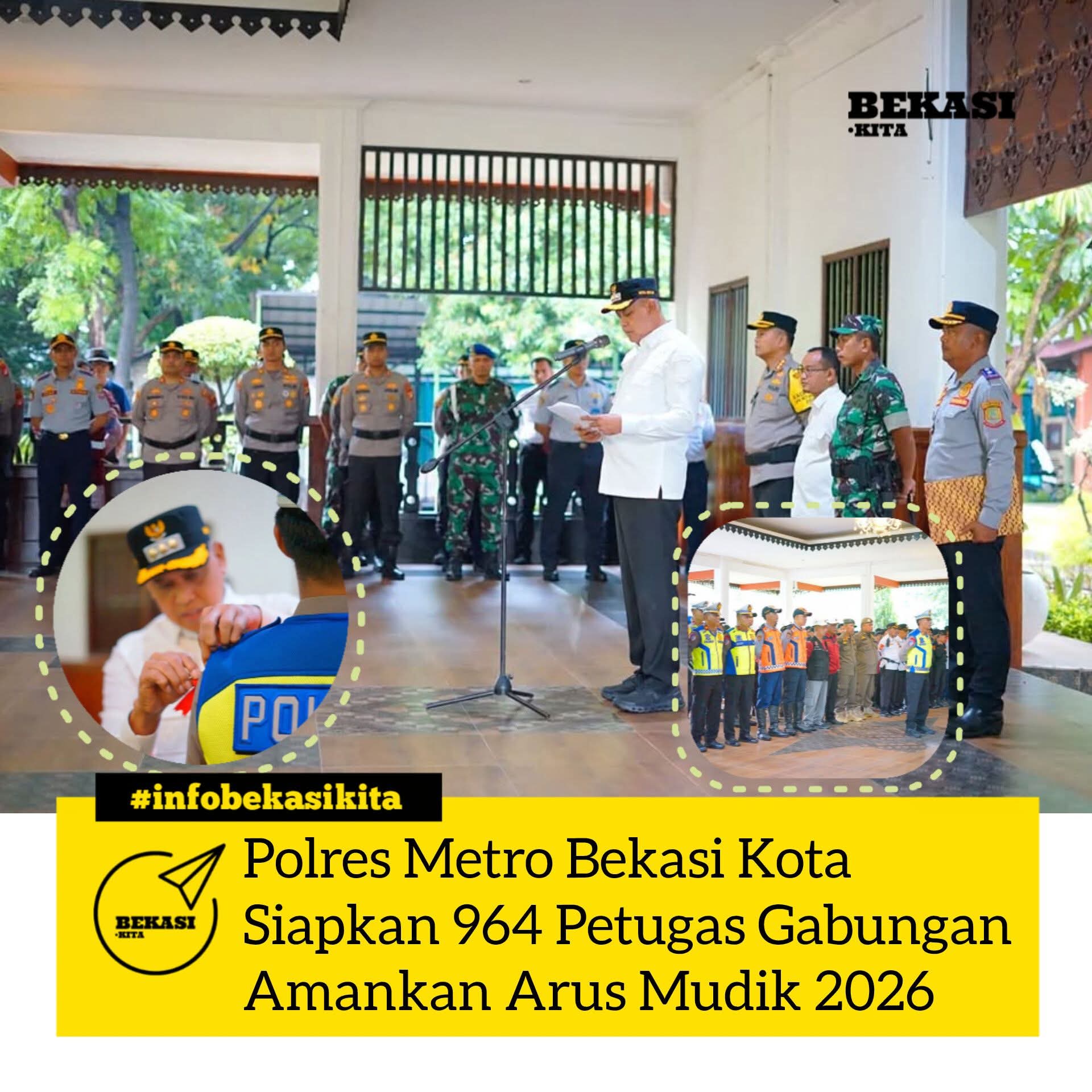 VN-24, Kota Bekasi – Polres Metro Bekasi Kota menggelar apel gabungan Operasi Ketupat Jaya 2026, dan menghadapi dimulainya musim arus mudik lebaran 2026. Apel gabungan di laksanakan di Pendopo Walikota Bekasi pada Kamis (12/03/26).