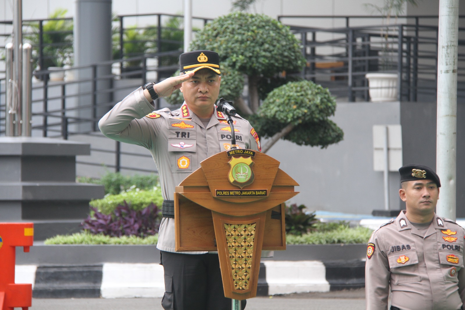 Bertindak selaku Inspektur Upacara, Wakapolres Metro Jakarta Barat Kombes Pol Dr. Tri Suhartanto, S.H., M.H., M.Si., Ph.D., memimpin langsung jalannya upacara.