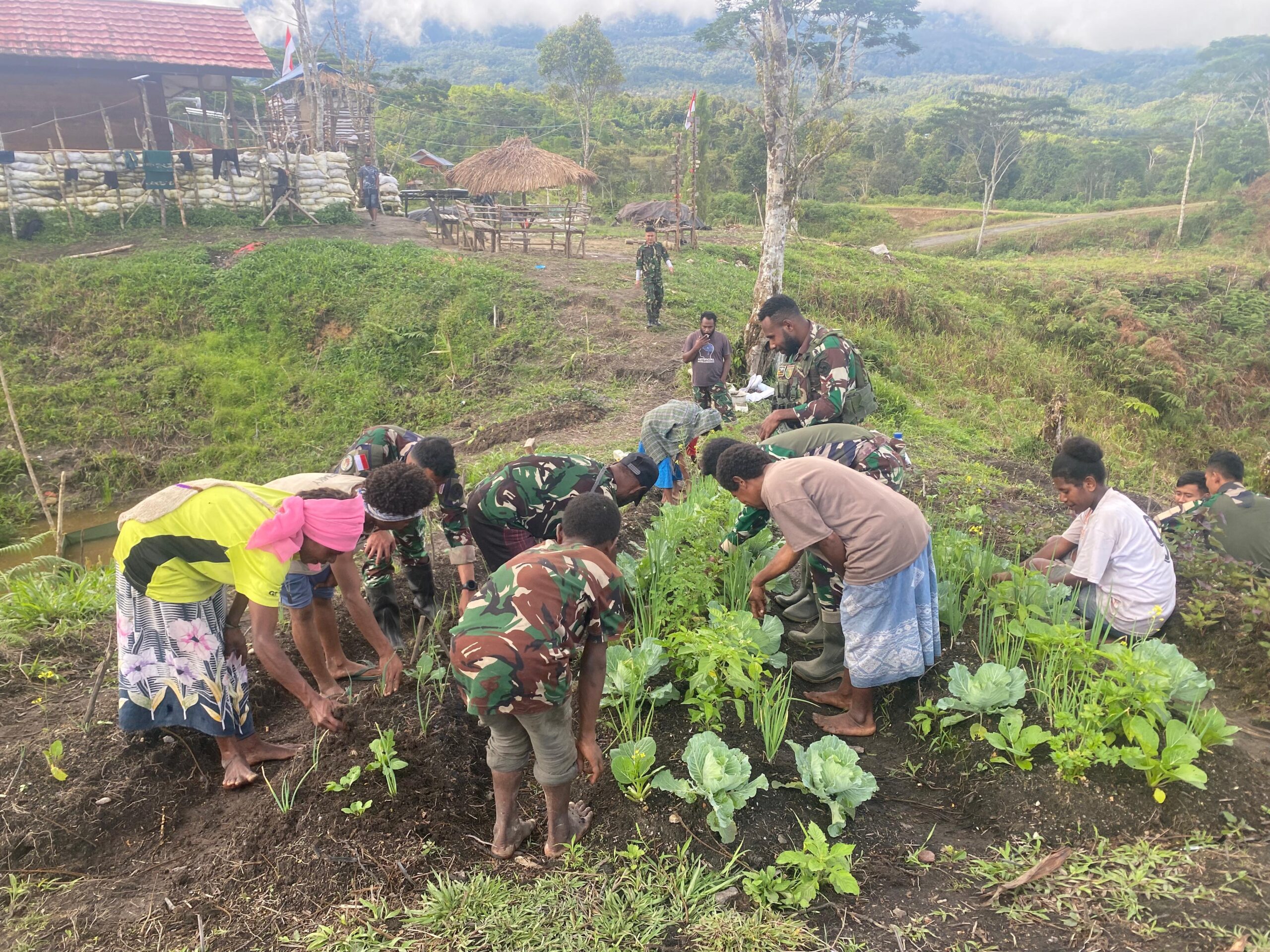 Menariknya, bibit sayuran diperoleh langsung dari masyarakat sekitar, dan proses penanaman dilakukan bersama-sama, menciptakan suasana penuh gotong royong dan kekeluargaan antara prajurit dan warga. Kebersamaan ini menjadi simbol kuat bahwa TNI tidak bekerja sendiri, tetapi tumbuh dan berkembang bersama rakyat.