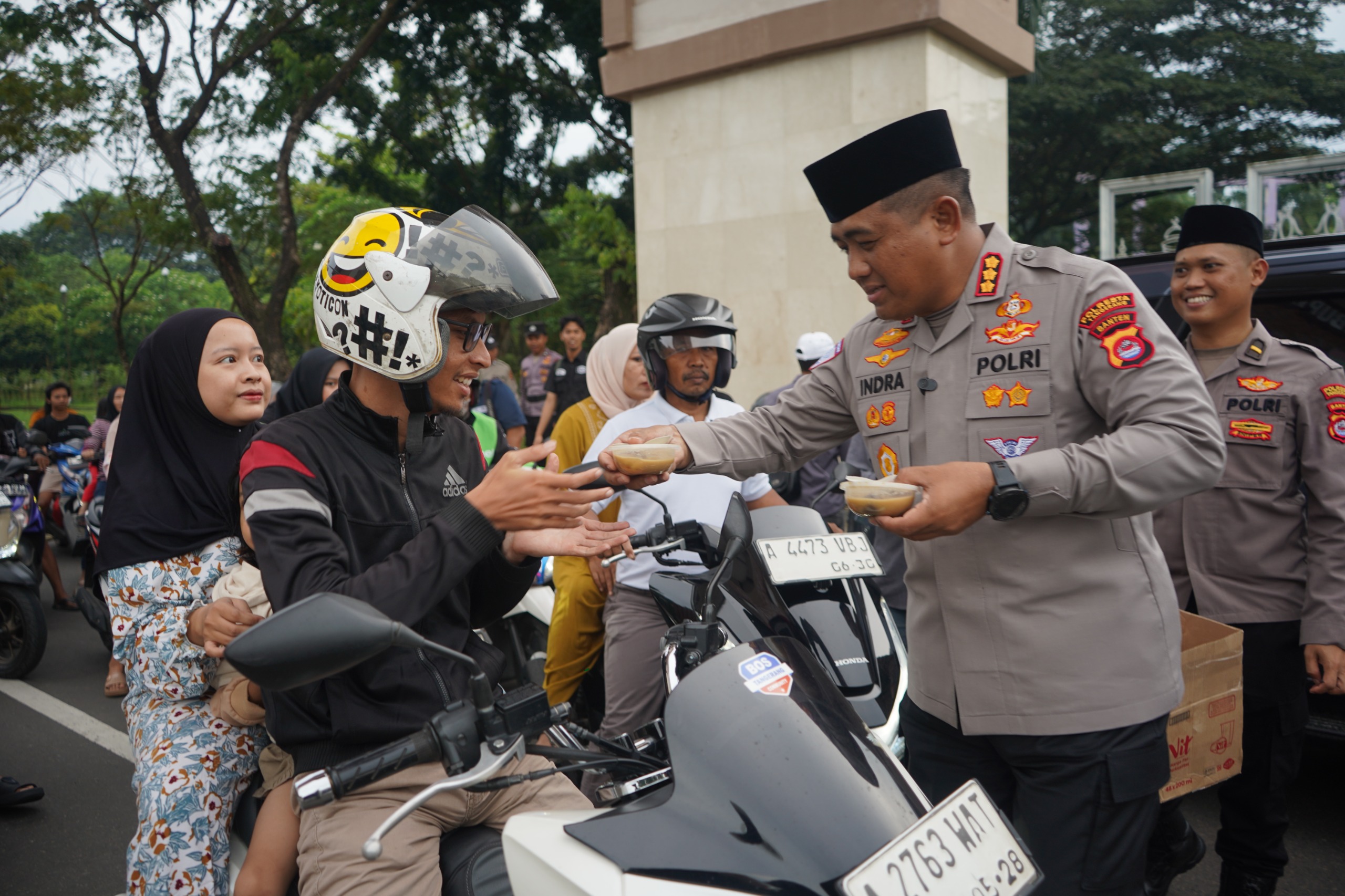 Setelah itu, kegiatan dilanjutkan dengan pembagian takjil kepada para pengguna jalan di kawasan Gerbang Selamat Datang Pemkab Tangerang. Pembagian takjil tersebut disambut antusias oleh masyarakat yang melintas menjelang waktu berbuka puasa.