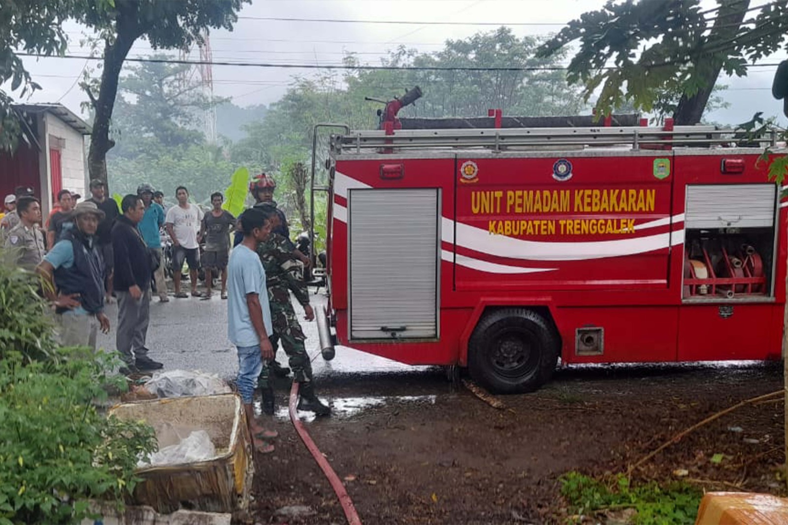 Mendapat laporan warga, Babinsa Tasikmadu Serda Paryanto dari Koramil 0806-07/Watulimo segera menuju lokasi dan berkoordinasi dengan Polsek Watulimo serta Damkar Trenggalek.