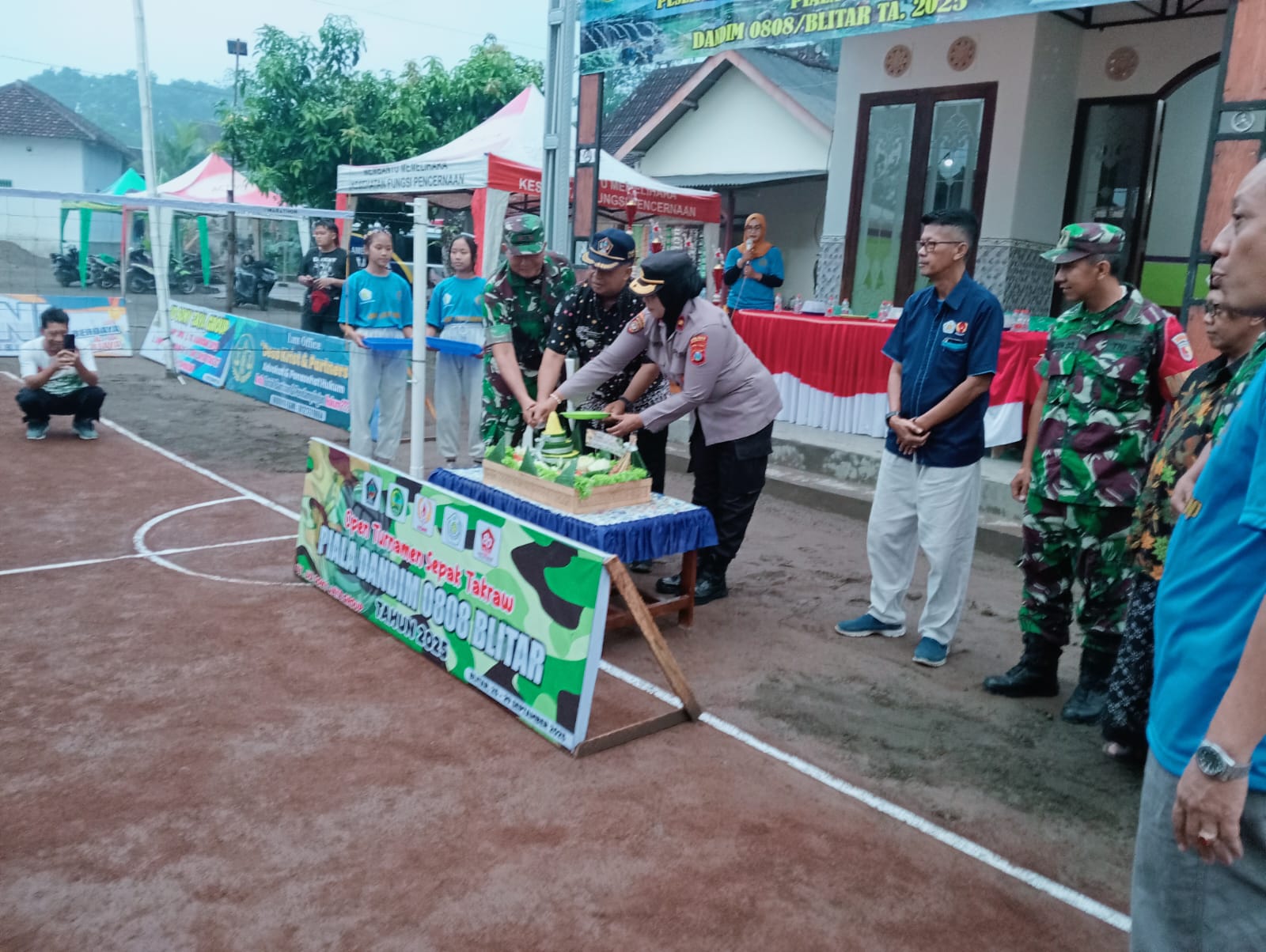 VN-24, Blitar – Dalam rangka memperingati Hari Ulang Tahun (HUT) ke-80 Tentara Nasional Indonesia (TNI), Kodim 0808/Blitar menggelar Turnamen Sepak Takraw Dandim Cup yang secara resmi dibuka hari ini, Kamis (25/9/2025), bertempat di Lapangan Desa Karanggandong Kecamatan Udanawu Kabupaten Blitar.