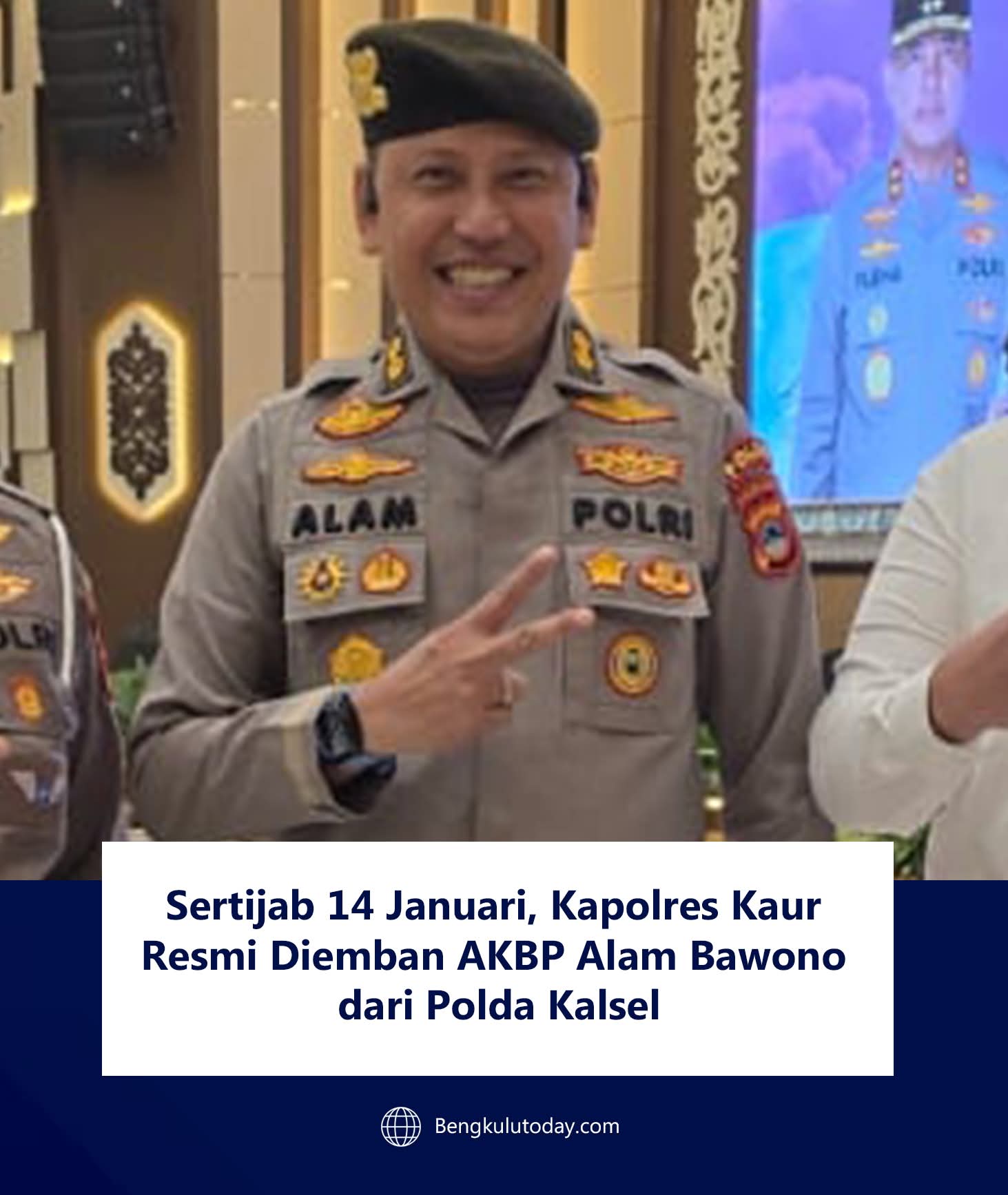 VN-24, Bengkulu — Kepemimpinan di Polres Kaur akan berganti pada 14 Januari 2026. Pada tanggal tersebut rencananya akan dilakukan serah terima jabatan. Jabatan Kapolres Kaur yang sebelumnya diemban oleh AKBP Yuriko Fernanda, S.H., S.I.K., M.H., akan diserahterimakan kepada AKBP Alam Bawono, S.I.K., M.Tr. Opsla.